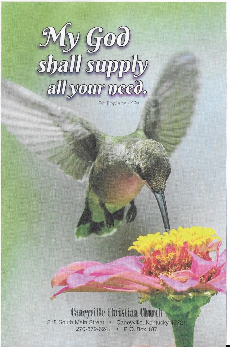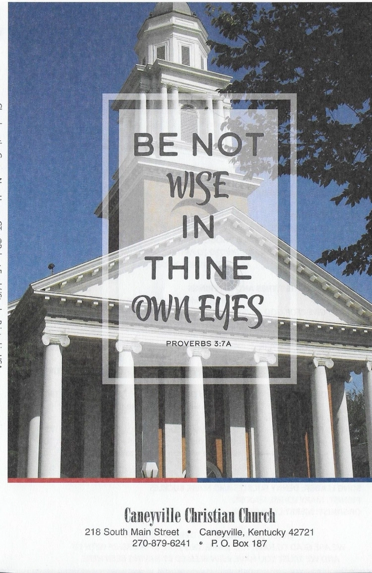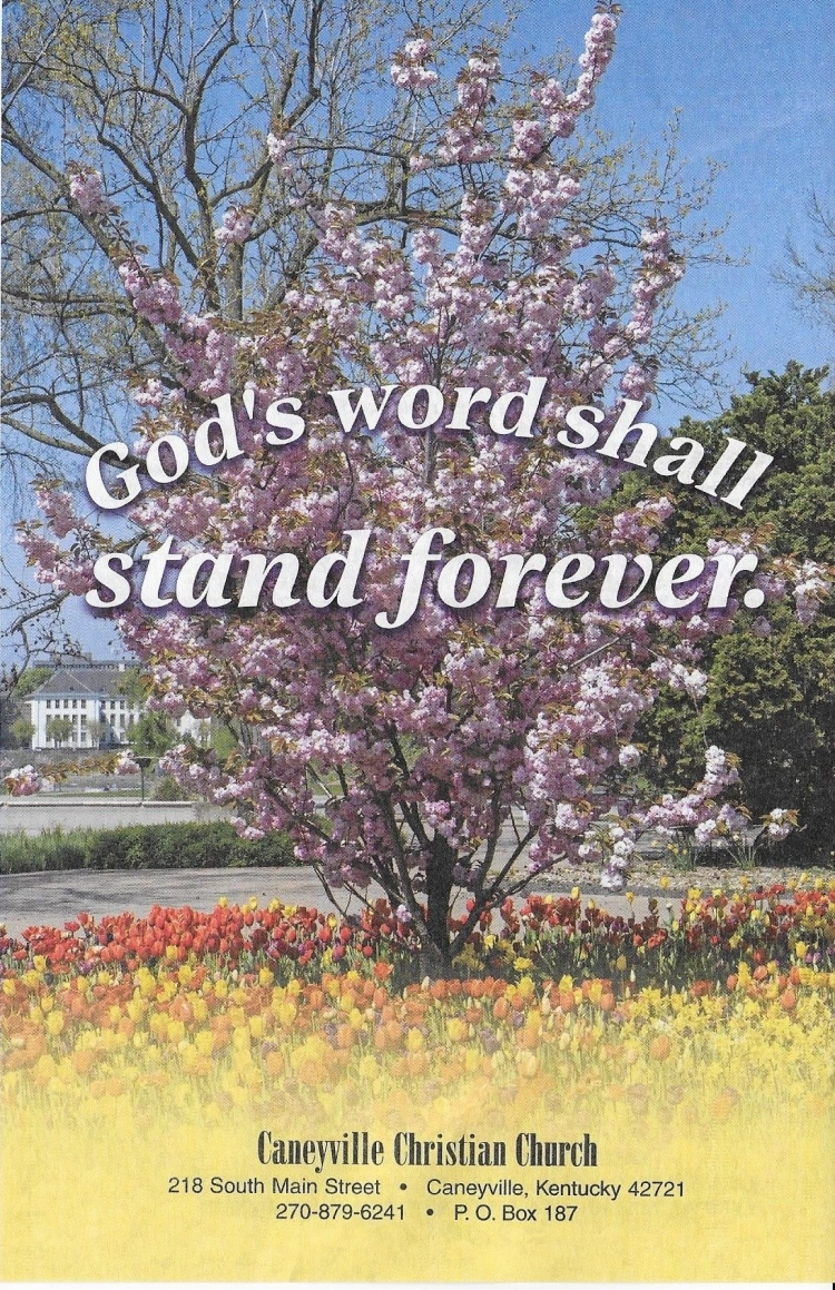 Keep up with the activites and other news at Caneyville Christian Church, even when you can't attend, by looking at copies of our Church Bulletin for the Week. Click on the cover or date of the bulletin you wish to view.